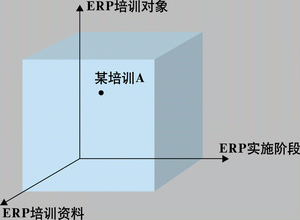 綜合上面談到的ERP培訓(xùn)分析的三個(gè)方面,涉及了ERP實(shí)施階段、培訓(xùn)對(duì)象、培訓(xùn)資料,如果把這三個(gè)方面分別作為三個(gè)維度的話,我們將看到ERP項(xiàng)目的立體培訓(xùn)模型,如圖3所示。