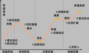 ERP實(shí)施的過(guò)程中,無(wú)論是企業(yè)還是企業(yè)中的個(gè)體,從中高層管理者到項(xiàng)目小組、關(guān)鍵用戶,基本上都要經(jīng)歷一個(gè)心理起伏的歷程,我們形象地稱之為“幸福曲線”。曲線橫軸是項(xiàng)目人員所投入的項(xiàng)目階段,縱軸是項(xiàng)目人員的幸福程度。整個(gè)歷程可以劃分為熱情、磨合、混亂、懷凝、滿意、穩(wěn)定和持繼改進(jìn)等多個(gè)階段。從中可見,在整個(gè)變革過(guò)程中,從不知情的盲目樂觀到知情后的悲觀,最后過(guò)渡到知情后的努力工作,直到對(duì)實(shí)施效果的滿意,這的確需要一個(gè)漫長(zhǎng)的過(guò)程。與之相匹配,“培訓(xùn)”在當(dāng)中扮演著啟動(dòng)一個(gè)階段,并帶領(lǐng)人們走出這個(gè)階段、走向下一個(gè)階段的角色。培訓(xùn)對(duì)象通過(guò)ERP培訓(xùn)進(jìn)行學(xué)習(xí),其實(shí)也是一項(xiàng)艱苦的工作。比如說(shuō),詳細(xì)的功能模塊培訓(xùn),不可能完全像理念培訓(xùn)中看漫畫的環(huán)節(jié)那樣有趣,現(xiàn)在需要倉(cāng)庫(kù)管理的人員來(lái)清楚掌握ERP軟件庫(kù)存模塊當(dāng)中“庫(kù)存組織的多層次結(jié)構(gòu)”、“物料屬性的維護(hù)”、“批號(hào)與序列號(hào)的跟蹤控制”、“雜項(xiàng)接收與發(fā)料”、“循環(huán)盤點(diǎn)的實(shí)現(xiàn)”等一大堆相對(duì)抽象的概念,這是非得打起精神、拿出一點(diǎn)兒學(xué)習(xí)的勁頭不可的。
